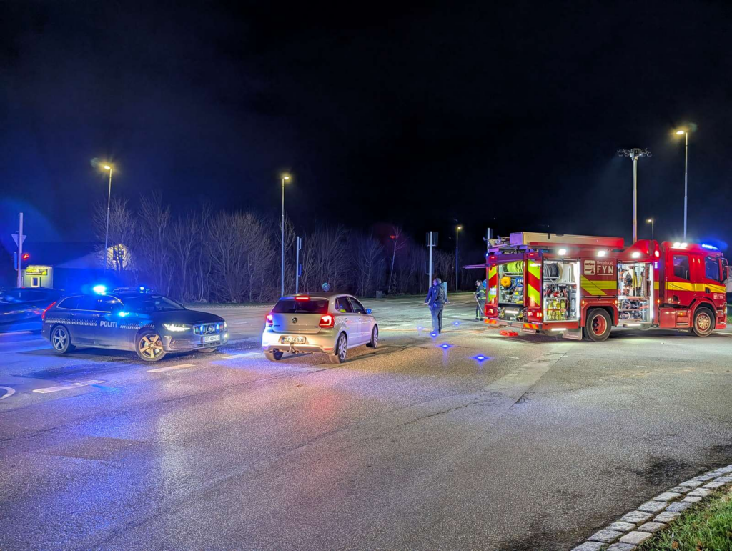 Søndag aften hastede flere udrykningskøretøjer mod et større kryds, hvor der var sket et færdselsuheld med øjensynligt to involverede biler.