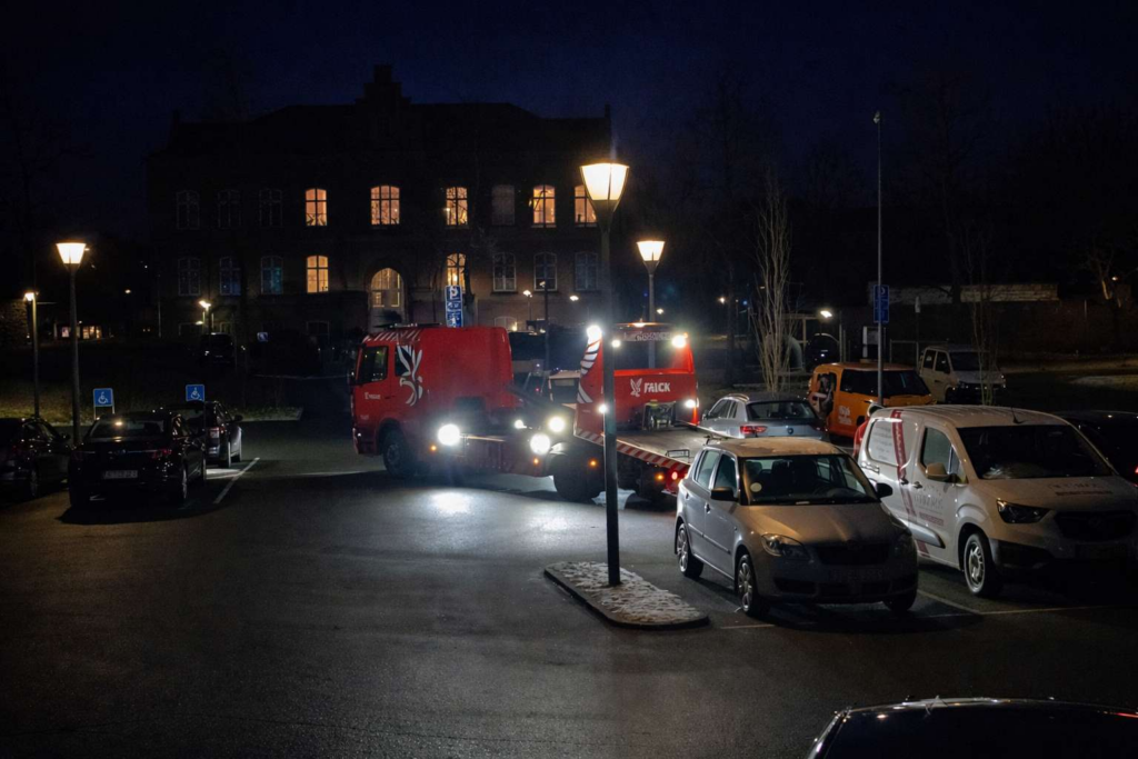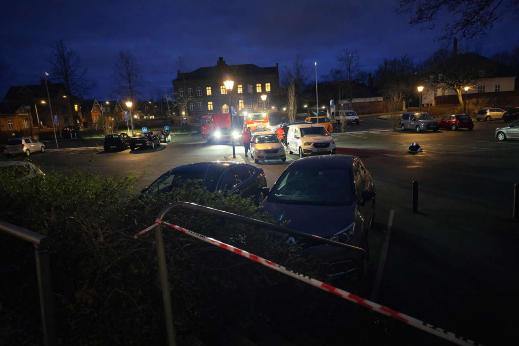 En parkeringsplads er afspærret, mens politiet undersøger området.