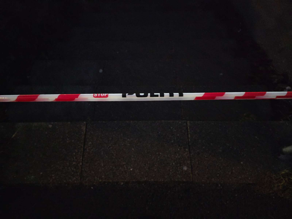 Politiets arbejde foregår ved Gasværksgade i Nyborg, hvor offentligheden holdes på afstand, mens undersøgelserne fortsætter.