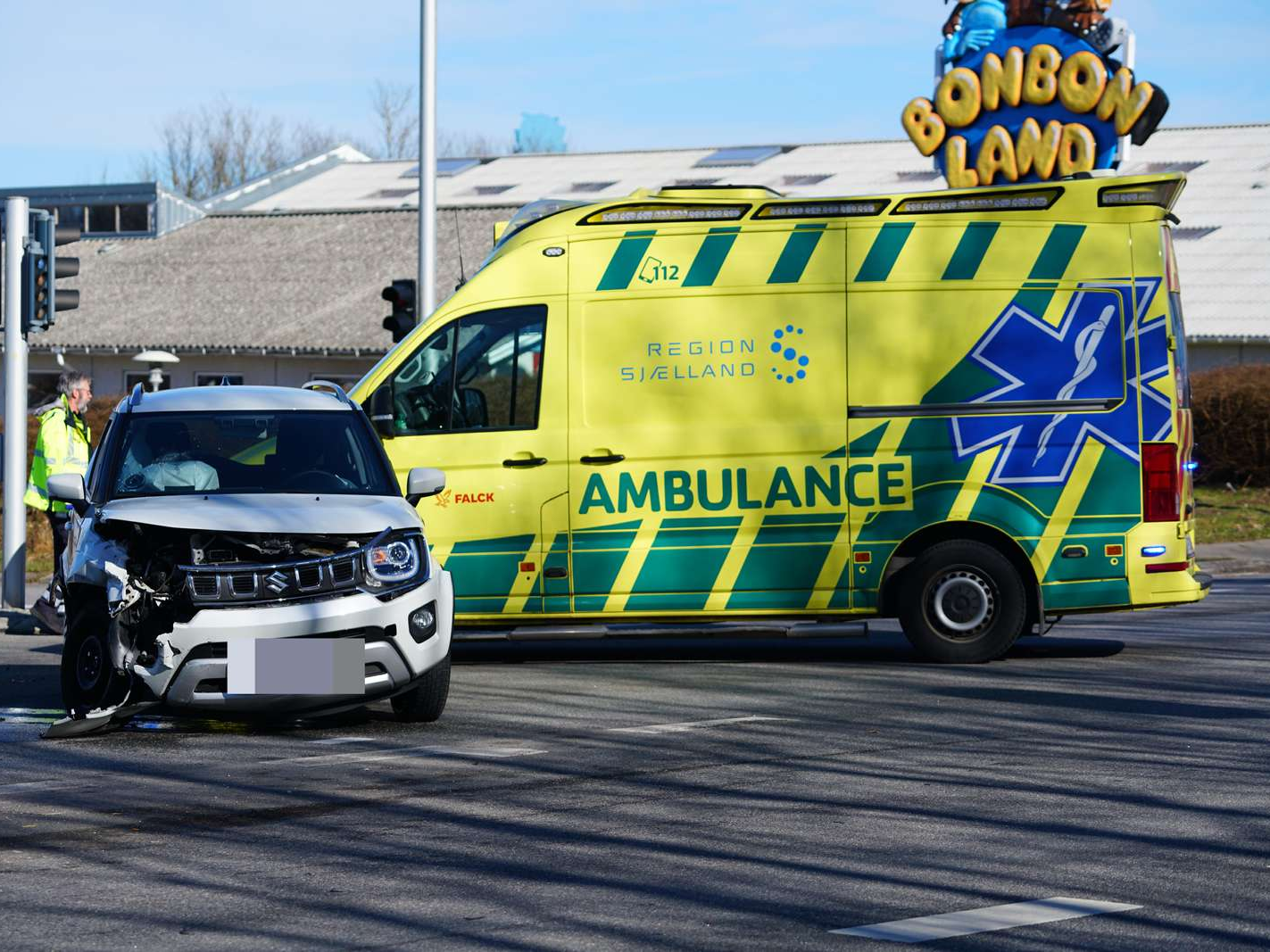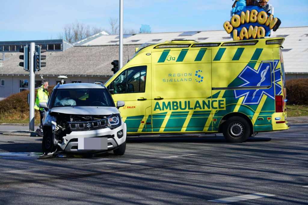 Ulykken er sket i et kryds på landevejen mellem Næstved og Rønnede, nær BonBon-Land og BilligBlomst.