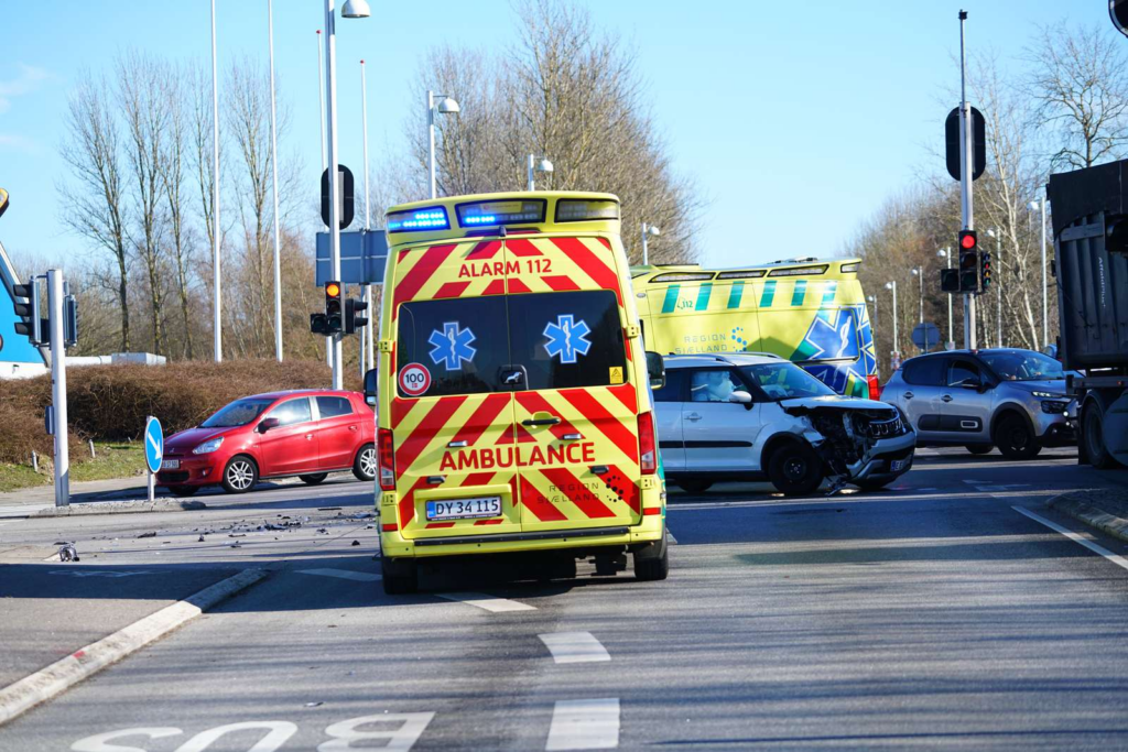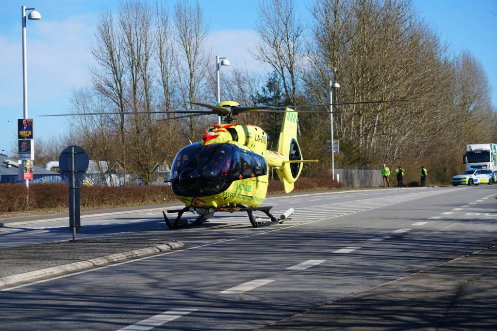 Den tilskadekomne blev efterfølgende lagt i en ambulance, som kørte fra stedet med udrykning.
