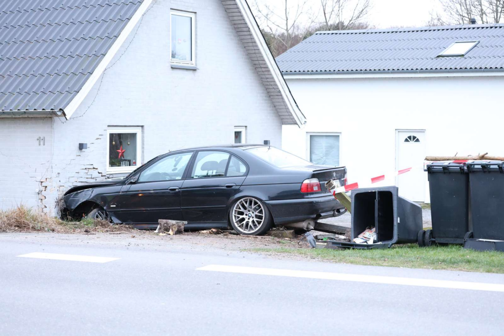 Det skyldes en bil, der har ramt husmuren i høj fart.