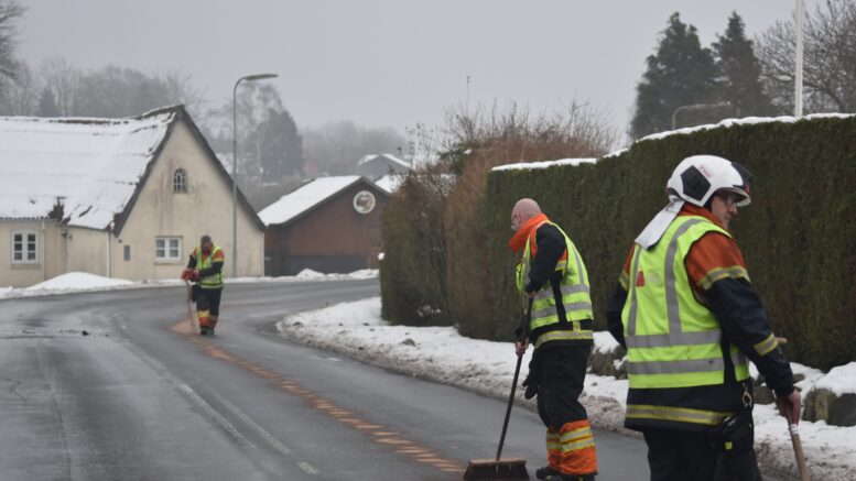 Færdselsuheld: Lastbil har tabt gods i et lyskryds!