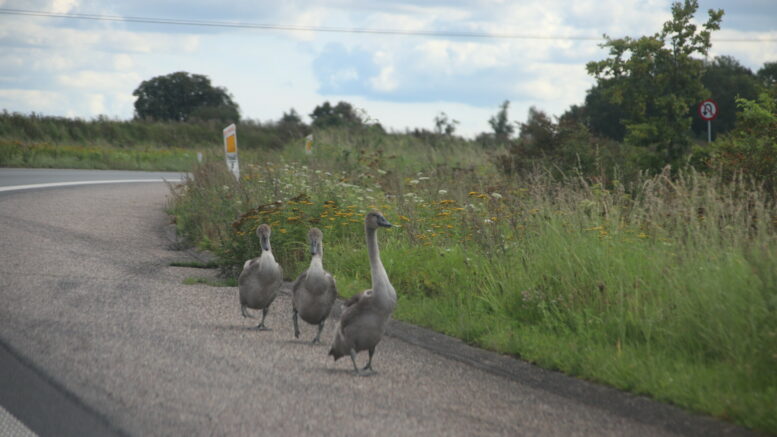 Kør forsigtigt: Svanefamilie går på motorvejen