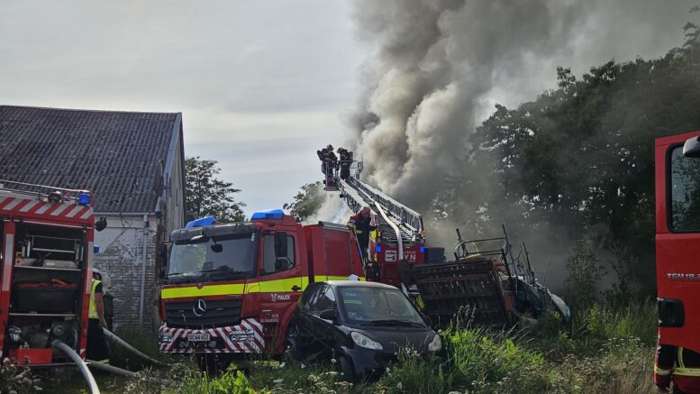 Voldsom bygningsbrand på Fyn