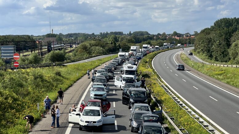 Massiv kø på motorvej efter uheld: Folk går på vejen
