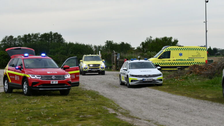 Ambulance ankommet til redningsaktion ved havn: Helikopter leder efter person