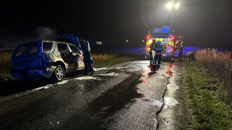 Personbil fuldstændig udbrændt – står rygende tilbage