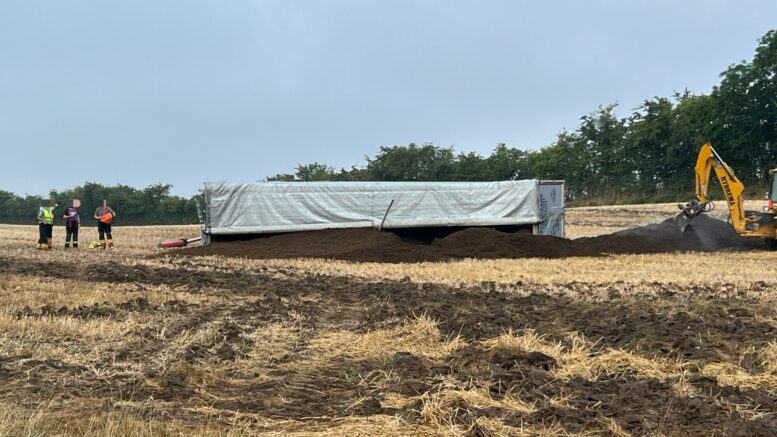 Lastbil vælter på mark: En person kørt på universitetshospital
