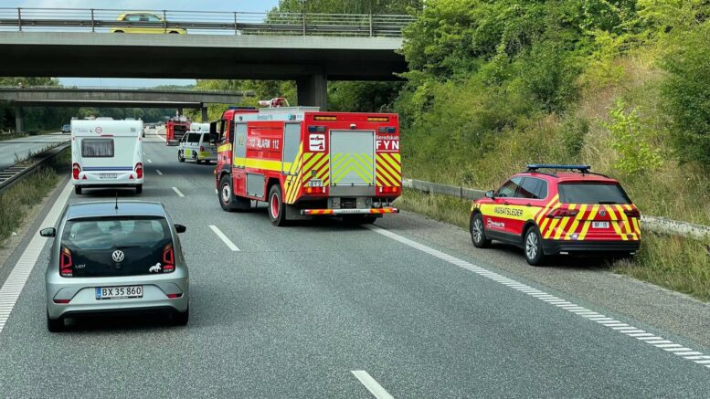 Bil med campingvogn går i brand på motorvejen