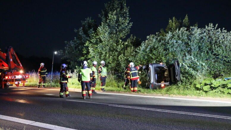 Bil landede på siden mellem træer ved ulykke i Stenstrup på Fyn
