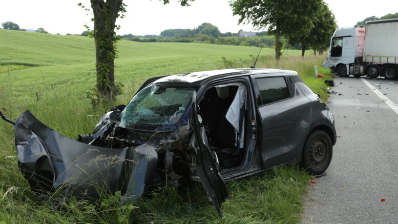 Alvorligt færdselsuheld: To lastbiler rammer personbil