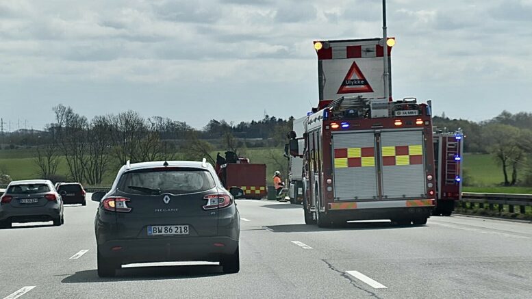 Lastbil lækker brændstof på motorvejen