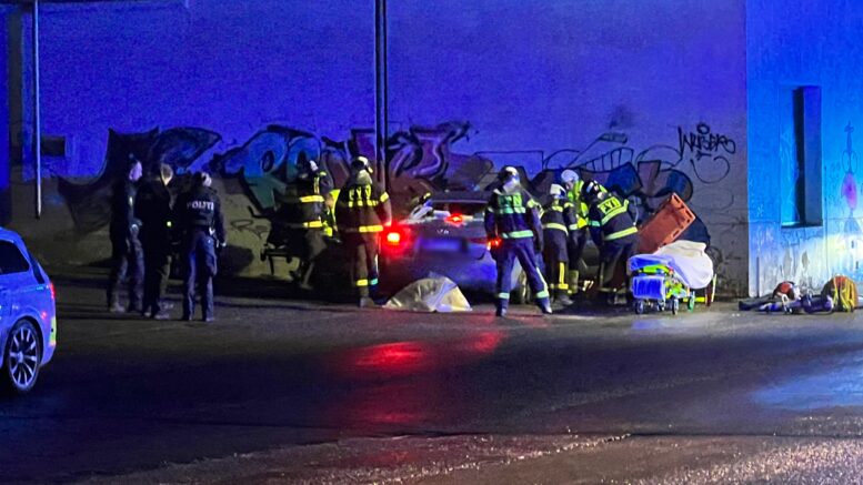 Bil kørt ind i bygning: Melding om fastklemte