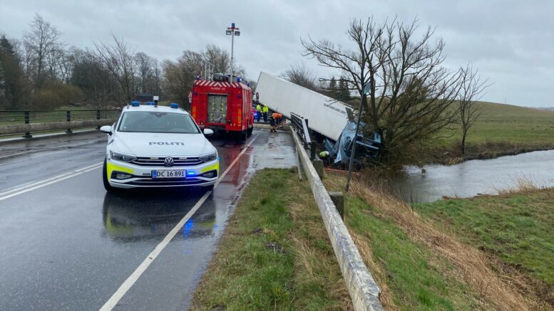 Lastbil kørt i Odense Å: Vej spærret i begge retninger