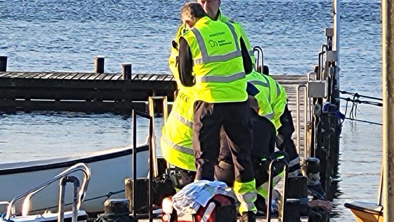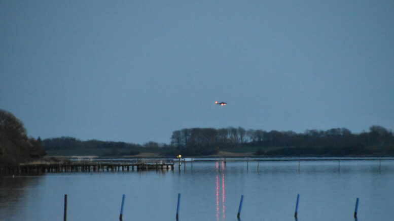 Melding om drukneulykke ved Middelfart – nødraket set ude på vandet