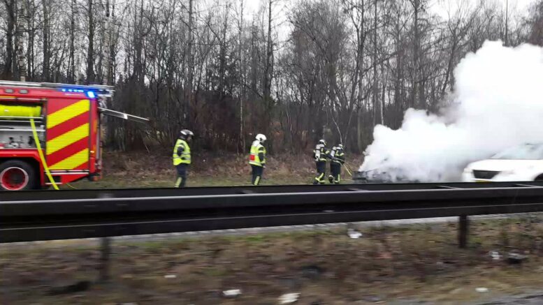 Bil udbrænder i nødsporet på Fynske Motorvej