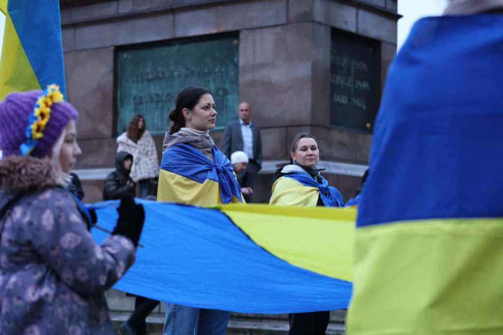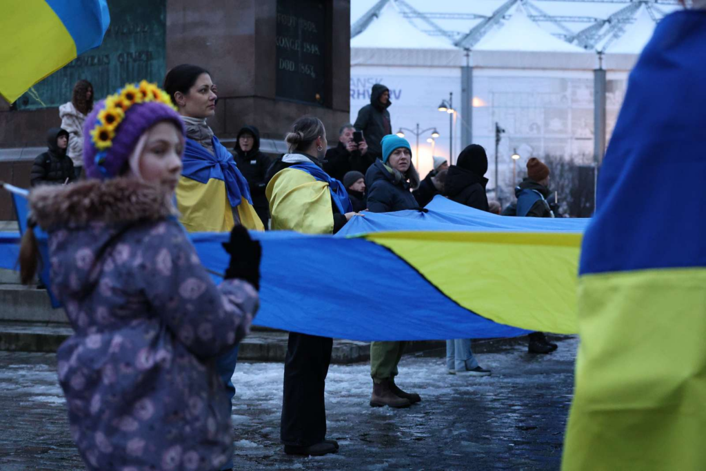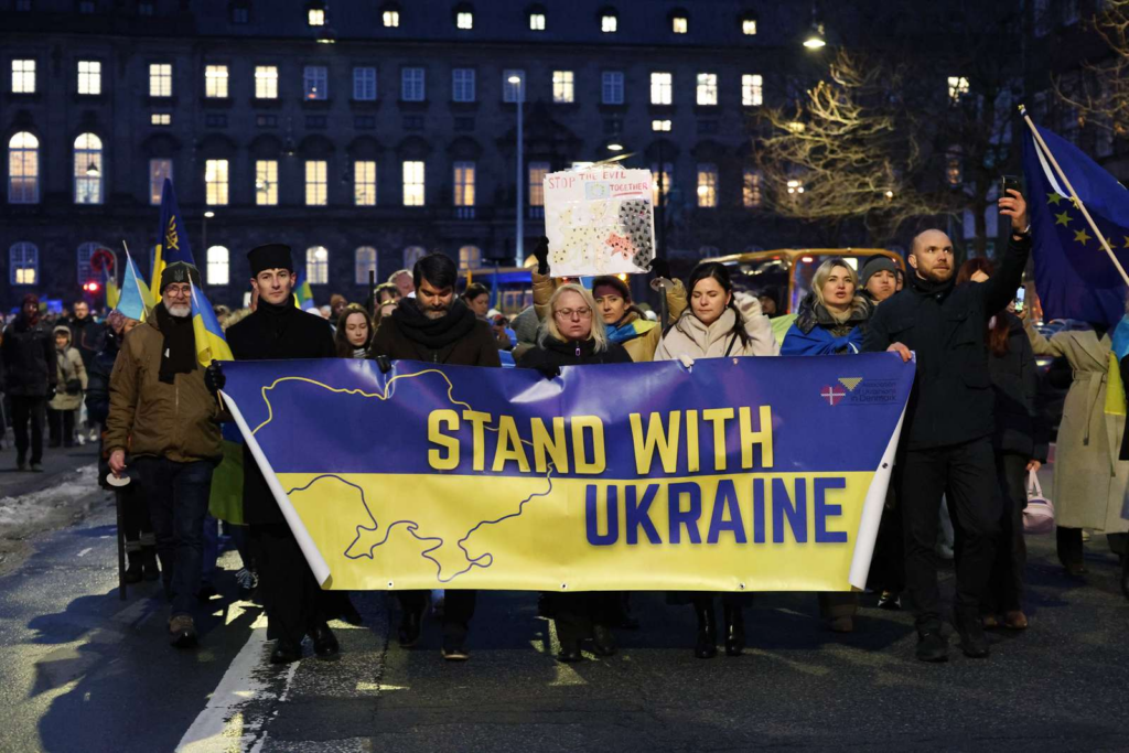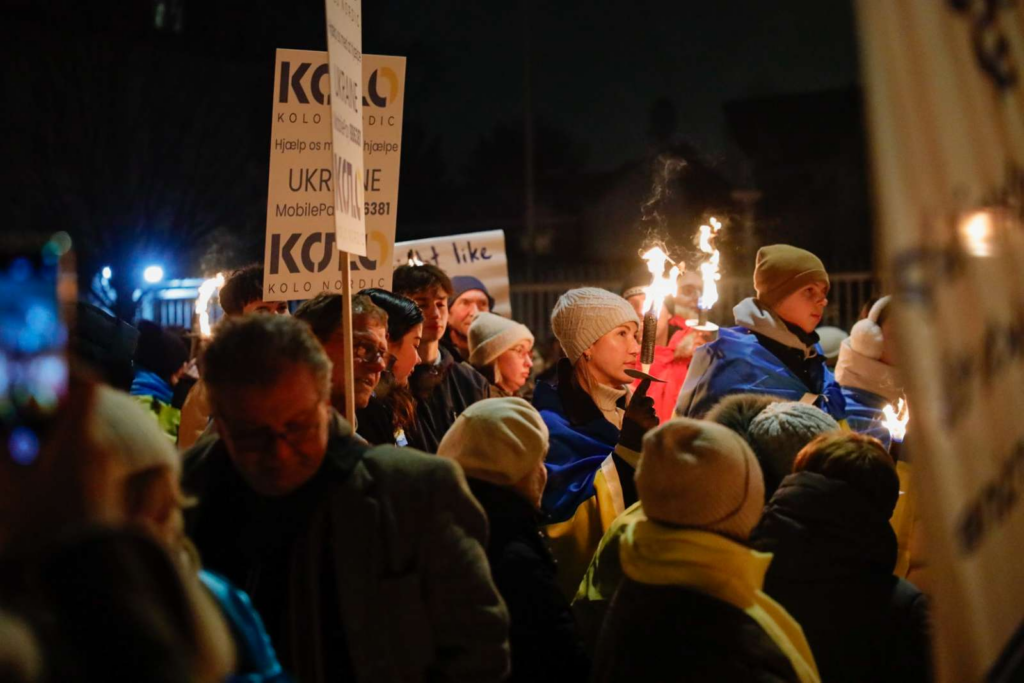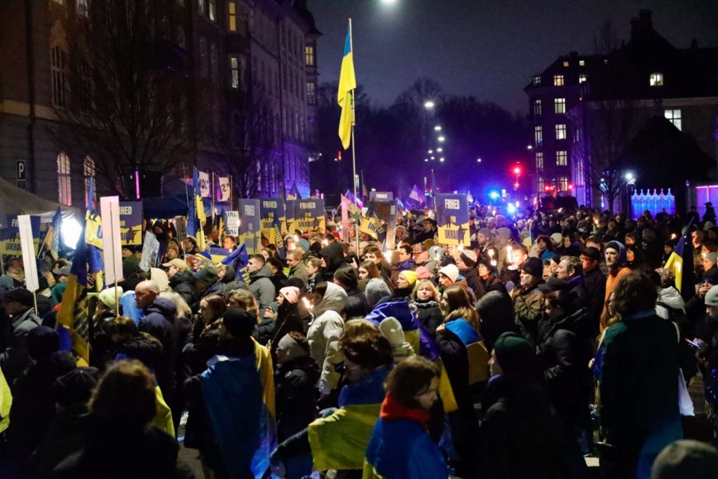 Tirsdag aften har der været demonstration for Ukraine i anledningen af fireårsdagen for den russiske invasion af landet.