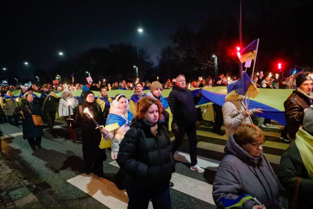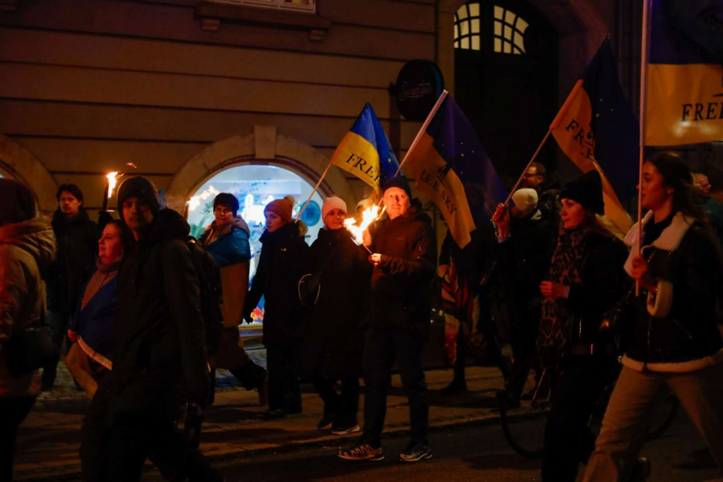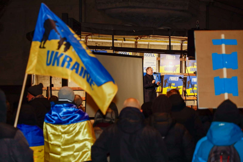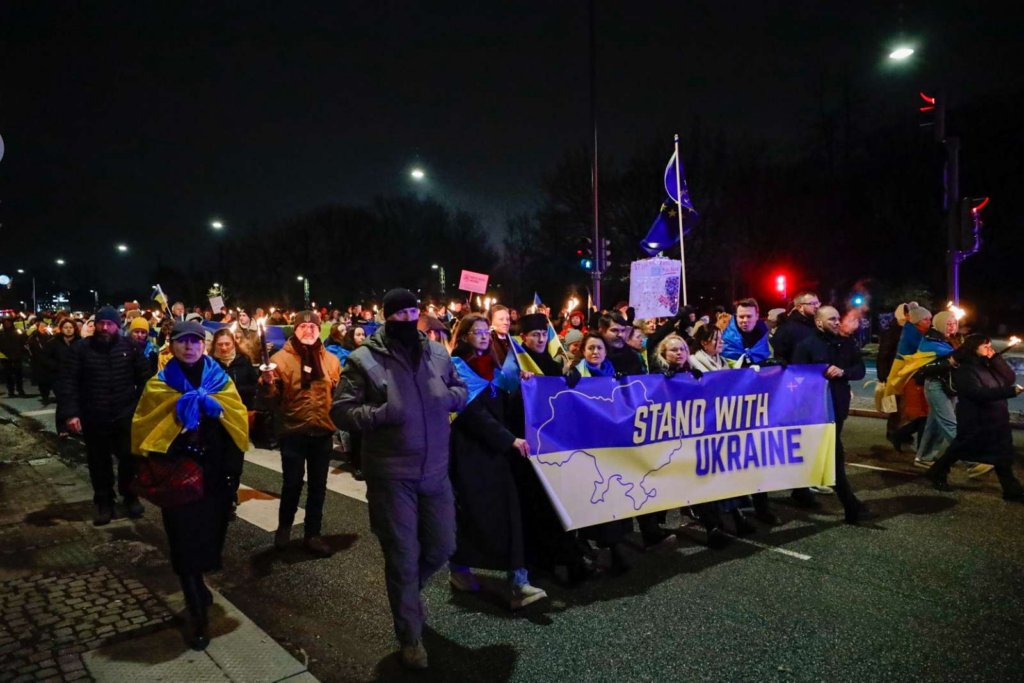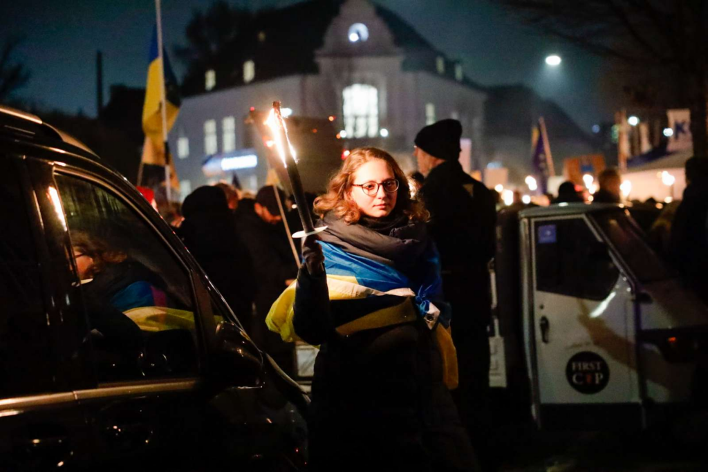 Tirsdag aften har der været demonstration for Ukraine i anledningen af fireårsdagen for den russiske invasion af landet.