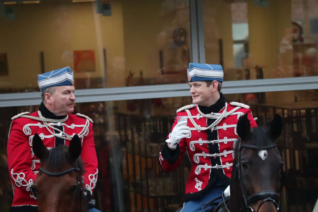 På denne december-onsdag var der nemlig mulighed for at ønske både gardehusarer og heste en glædelig jul, da de red fra deres hjem på Gardehusarkasernen lidt uden for byen og ind mod midtbyen.