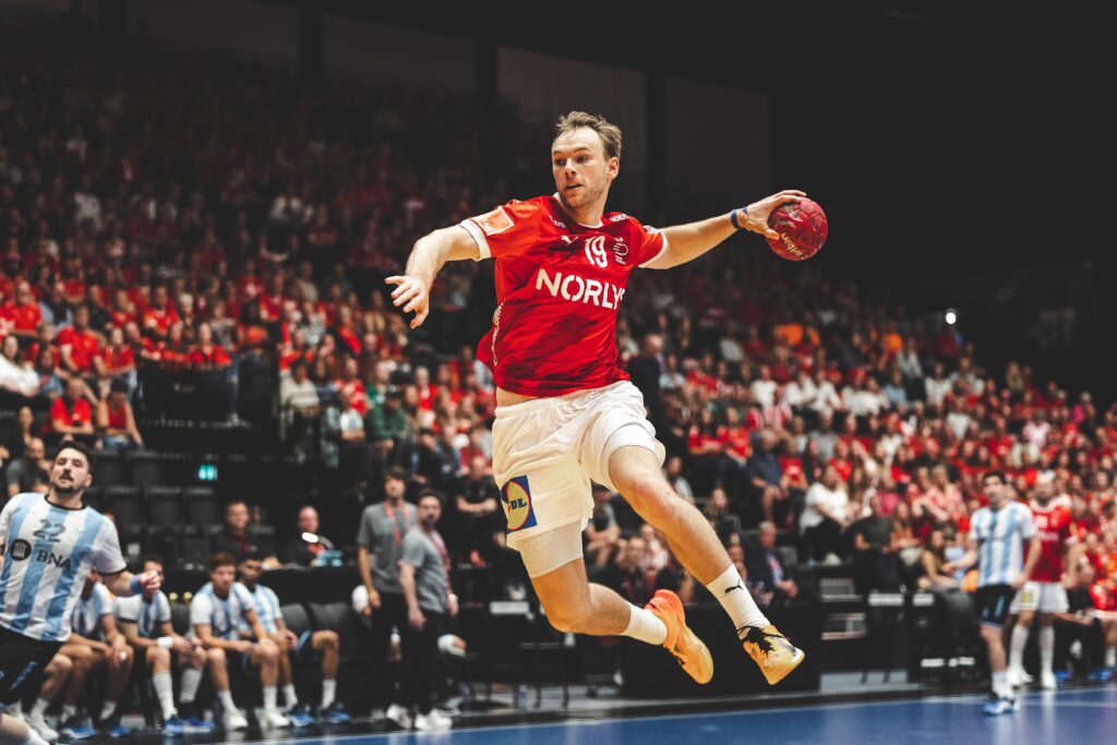 Mathias Gidsel i aktion for det danske landshold mod Argentina i 2024. Foto: Dejan Obretkovic/DanskHåndbold
