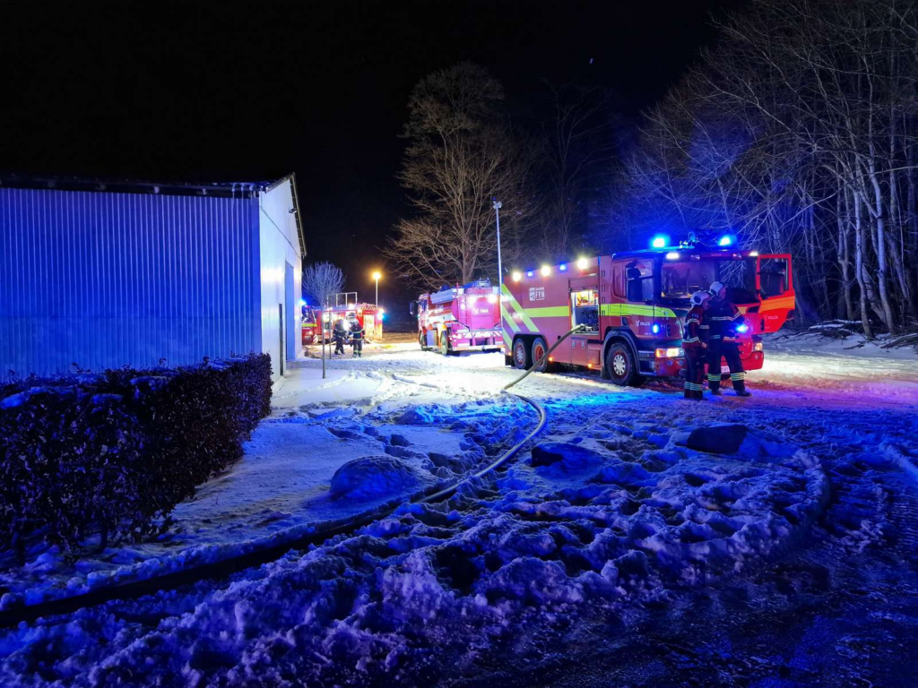 På billeder ses at flere brandbiler er ankommet, og brandslukningen er i gang.