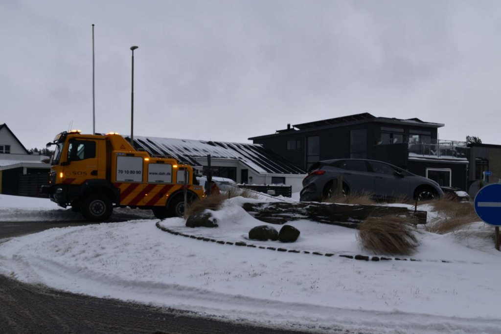Lørdag eftermiddag er en bilist kørt galt i en rundkørsel, hvor bilen er endt efter et solouheld. Uheldet har skabt opmærksomhed i området, hvor forholdene beskrives som meget glatte.
