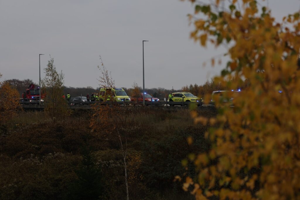 En ambulance er også fremme ved ulykkesstedet, men det er uvist, om der er sket personskade i forbindelse med ulykken.