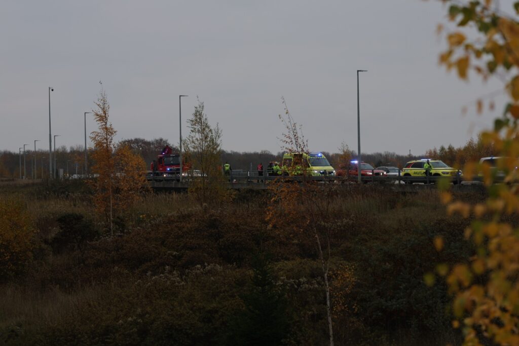 Politi og redning er fremme på stedet, og deres arbejde har skabt kø.