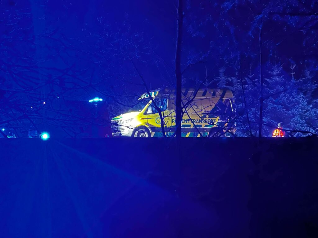 ‘Imens vi er ude på stedet, bliver en patienttransport ramt af en bil bagfra. Derfor er det to færdselsuheld i ét,’ siger vagtchefen fra Sydsjællands og Lolland-Falsters Politi.