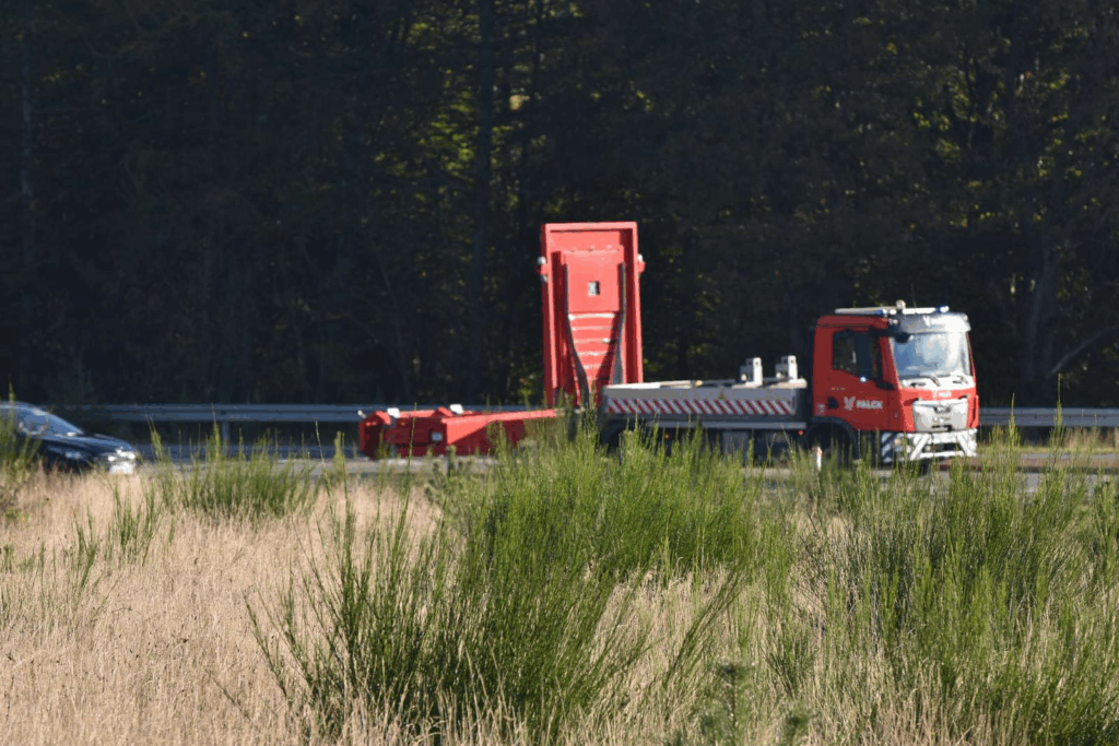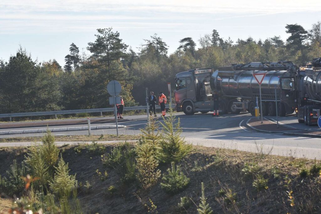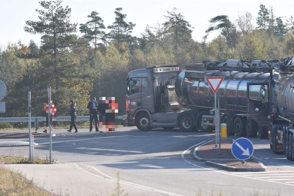“Gylletransporteren har lige tabt pusten. Det er et teknisk nedbrud på lastbilen, og nu holder den lidt i vejen. Vi skal have fundet ud af, hvordan den skal bjærges”, siger vagtchefen ved Midt- og Vestjyllands Politi, Simon Skelkjær til TV Midtvest.