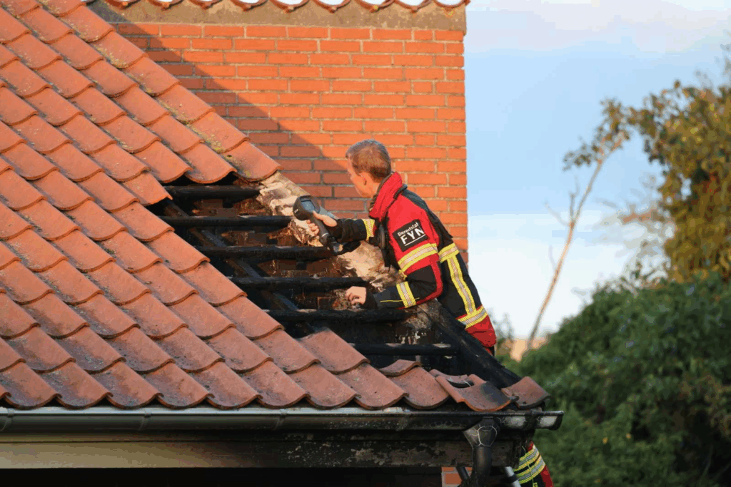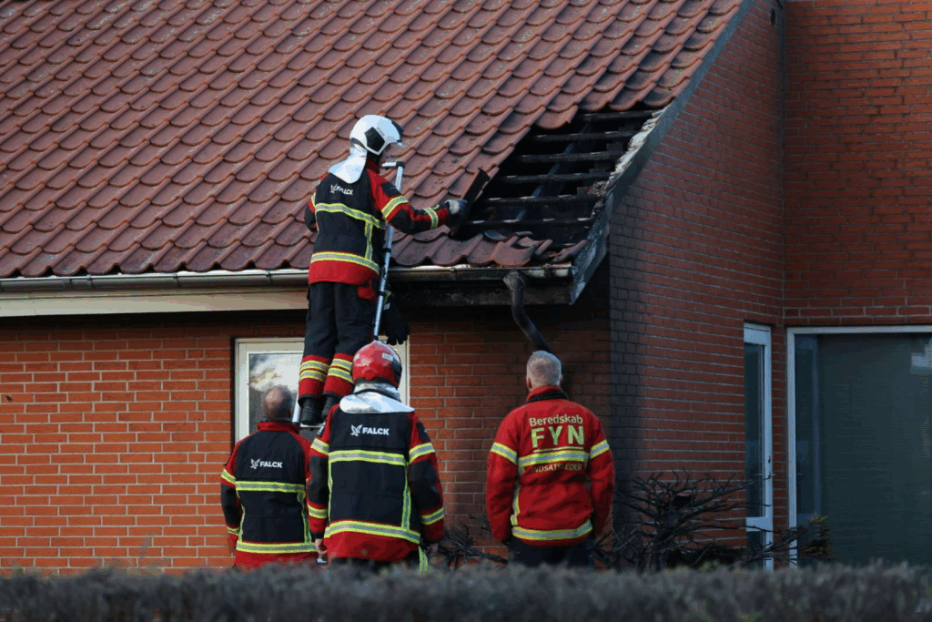 “Det ligner, at man har været for tæt på en hæk med en ukrudtsbrænder. Der er gået ild i hækken, og så er branden tilsyneladende fortsat til taget,” lyder det fra Presse-fotos.dk’s udsendte, der er til stede på Vestre Engvej i Bogense.