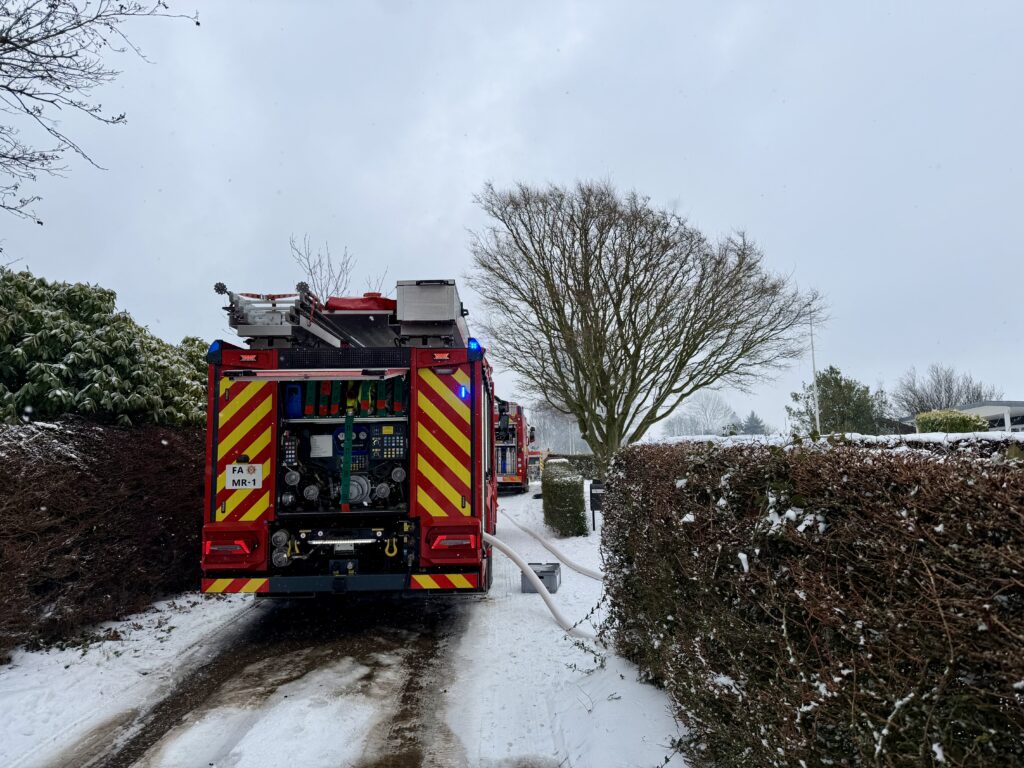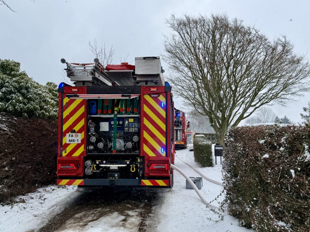 Billeder fra Presse-fotos.dks udsendte viser desuden, at flere udrykningskøretøjer er på stedet for at tage del i slukningsarbejdet.