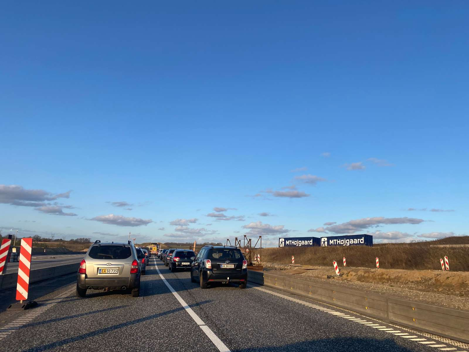 Ifølge trafikinformation er et spor blevet spærret, og trafikken afvikles derfor kun i ét farbart spor. Det betyder, at bilister i området må sætte farten ned og være ekstra opmærksomme.
