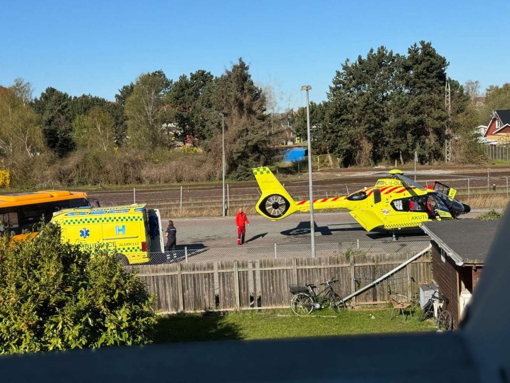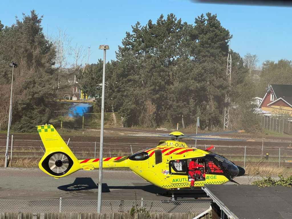 Flere udrykningskøretøjer ankom søndag morgen til området ved en station, da en akut sitatuation udspillede sig. Nær skinnerne landede også en lægehelikopter, der ifølge politiet har fragtet en person fra stedet.