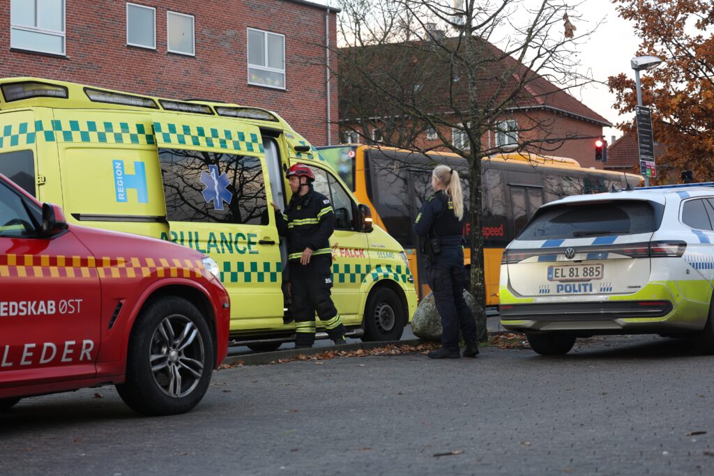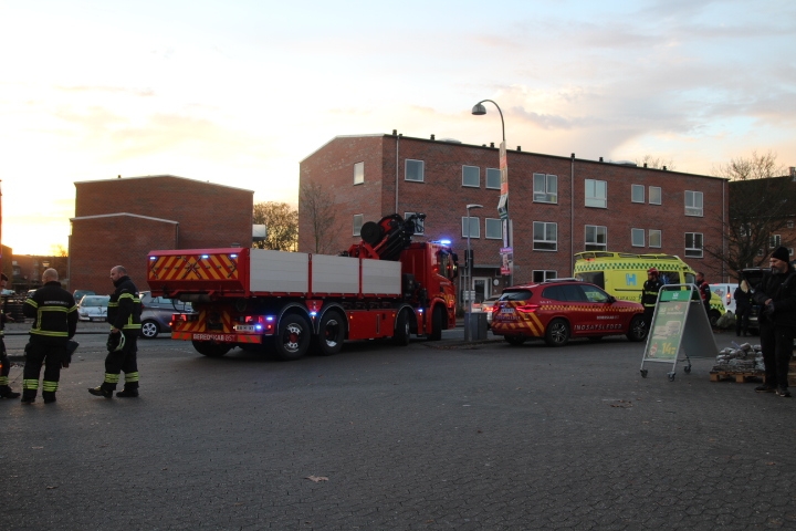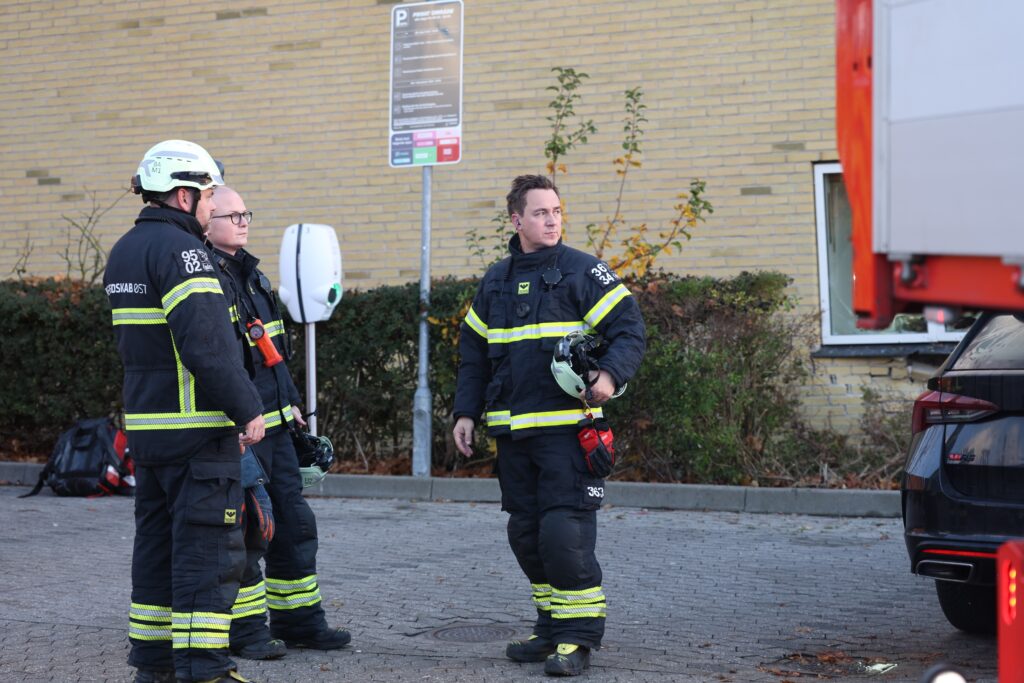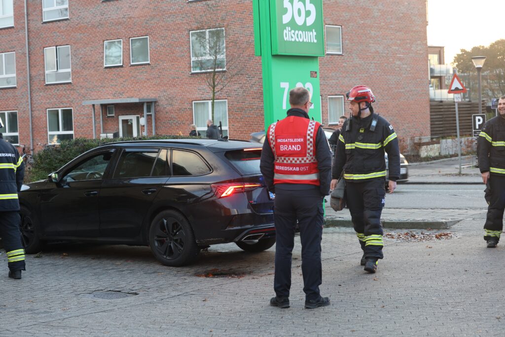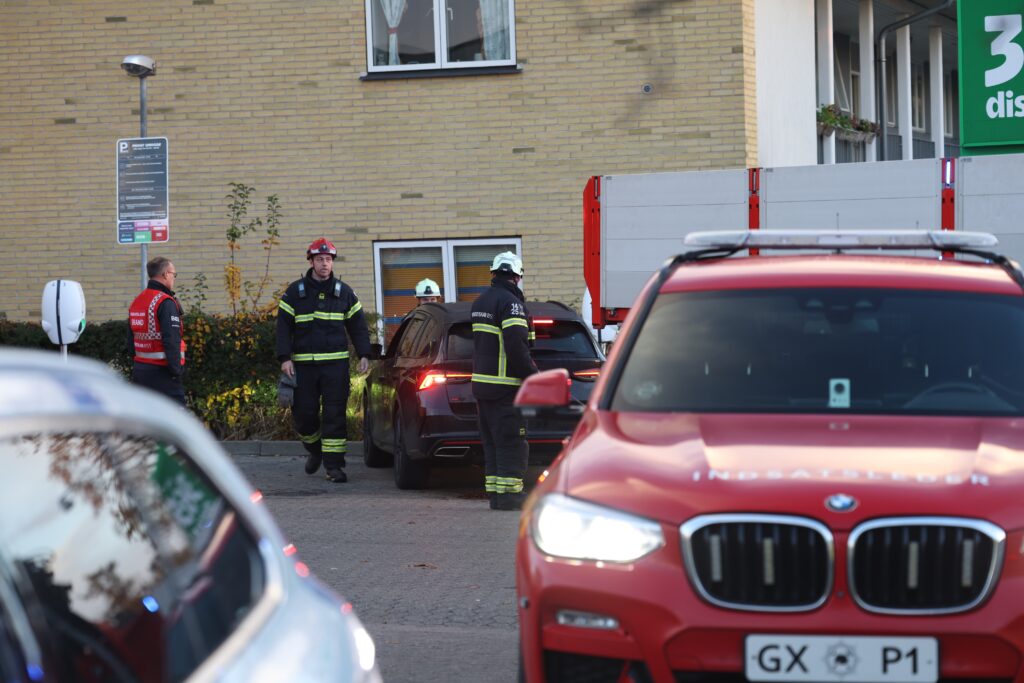 Derfor er både politiet, beredskabet og ambulancepersonale til stede på parkeringspladsen.