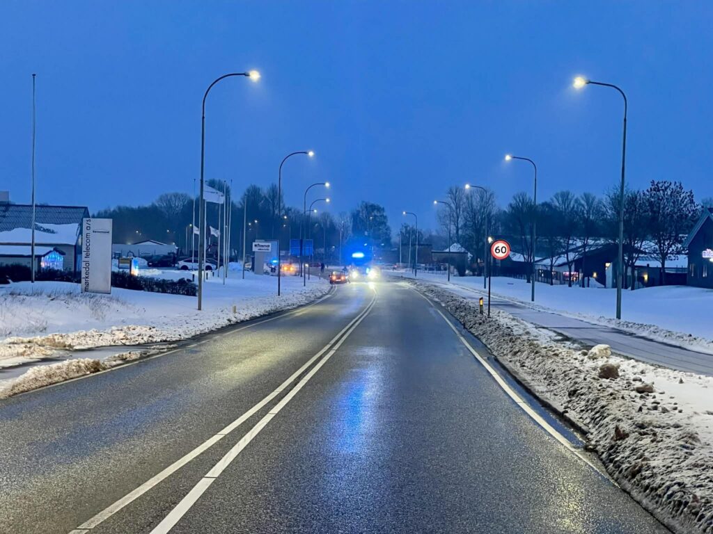 Den alvorlige hændelse finder sted på Skagerakvej i Holbæk, hvor vejen fortsat er helt spærret torsdag aften.