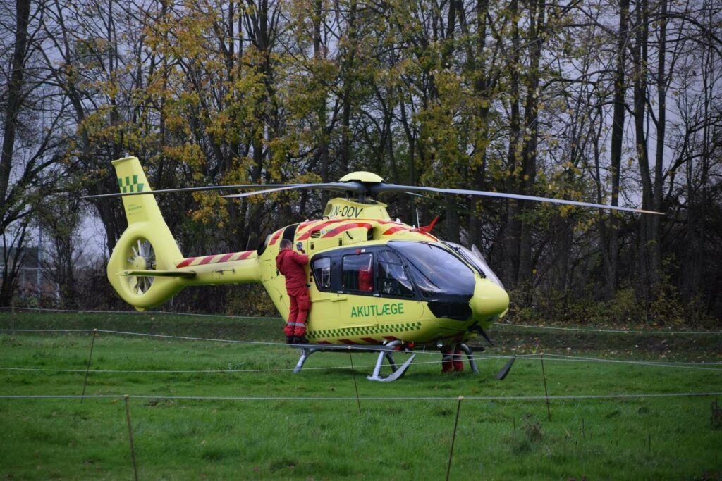 Kvinden er blevet fløjet til hospitalet efter ulykken.