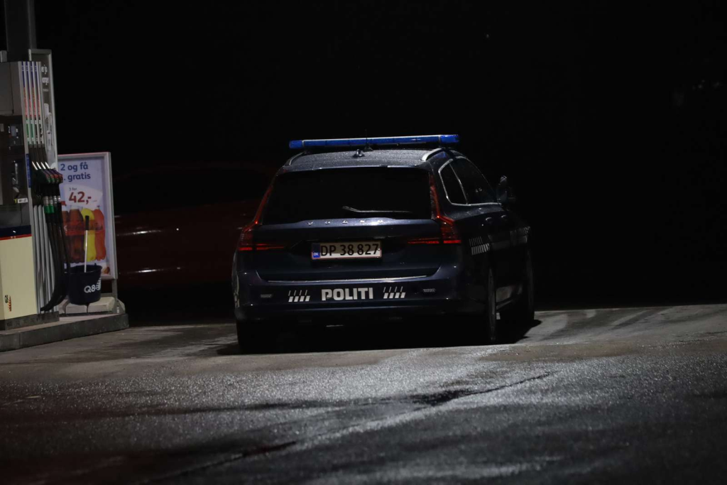 Omkring tankstationen foregår der en mindre politiaktion, hvor mindst to patruljer er fremme.