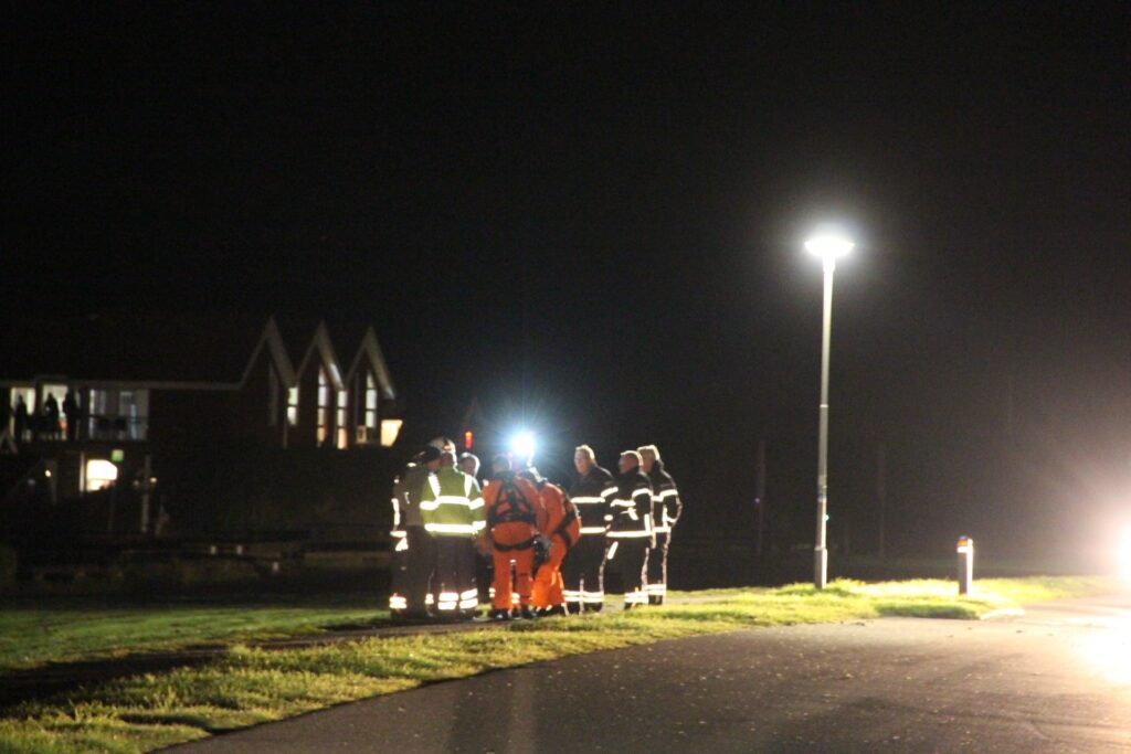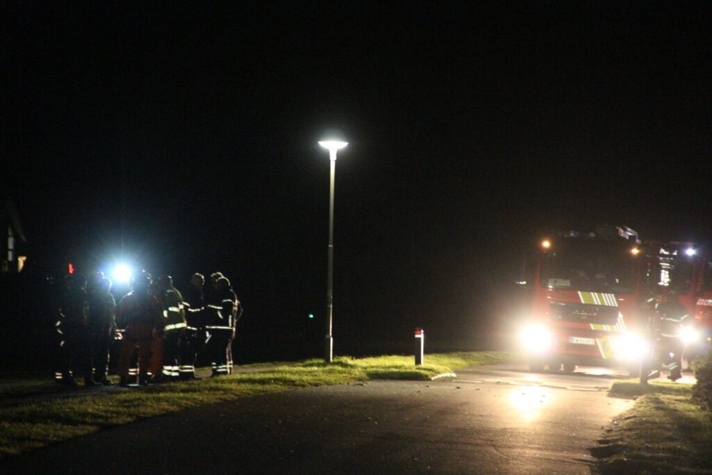 Foruden helikopteren var også to redningsbåde og brandbiler fremme på stedet.