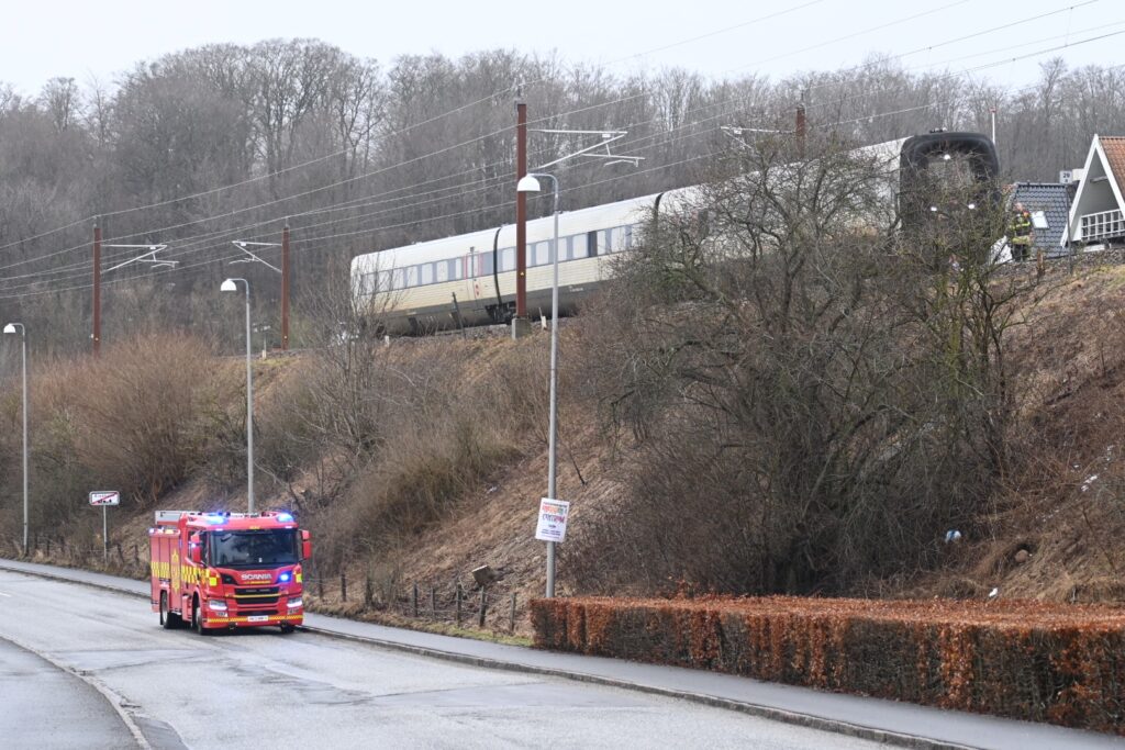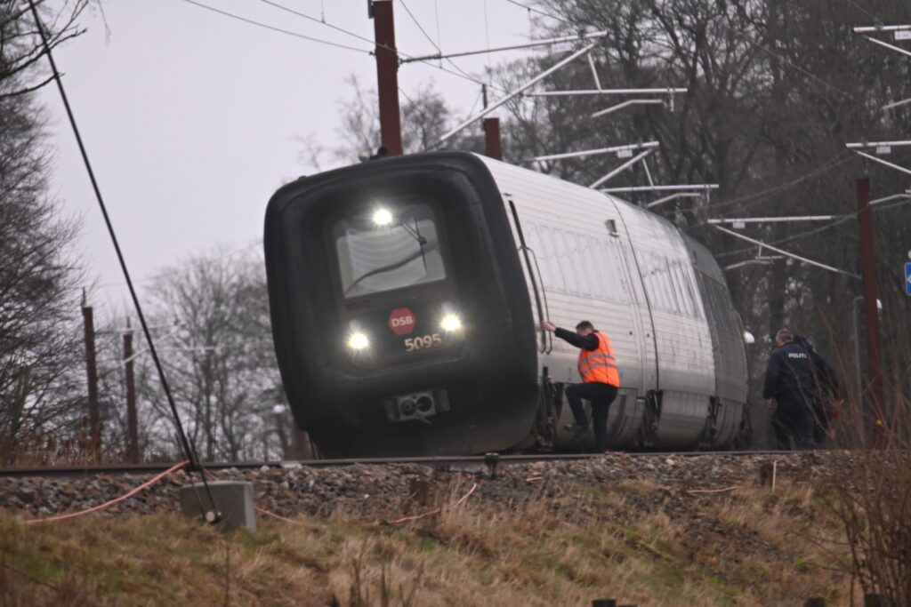 På billeder fra Presse-fotos.dk kunne man se flere udrykningskøretøjer være på stedet, hvor politi og beredskab går rundt på skinnerne ved et tog, der holder stille.
