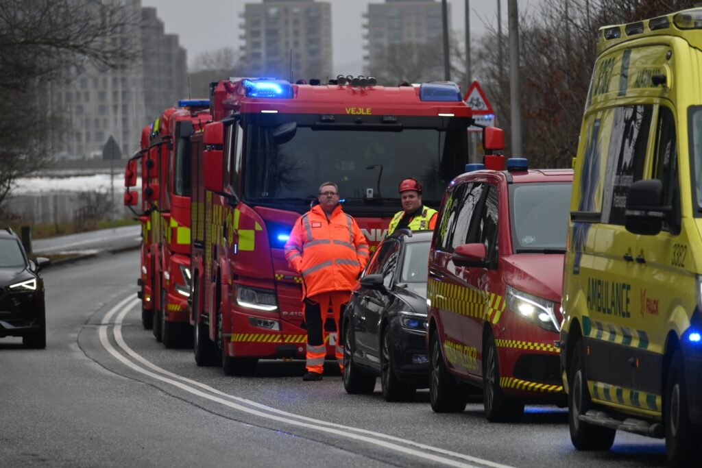 Billederne viste også, at der var en ambulance til stede – derudover var der endnu ikke mange oplysninger om tilskadekomne tidligere mandag.