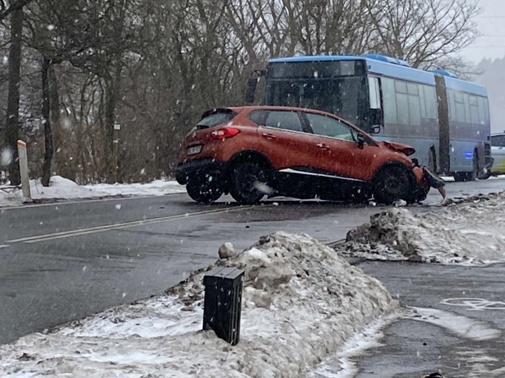 Her er beredskabet rykket ud efter meldinger om et færdselsuheld mellem to biler.