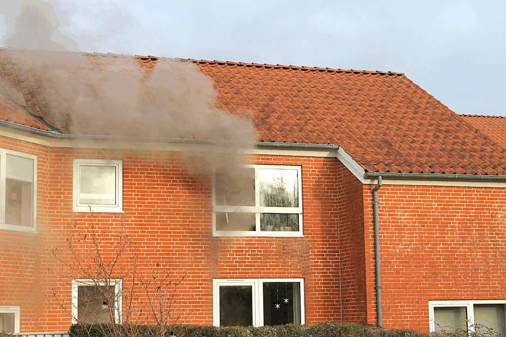 Billeder fra Fuglsøparken i Nykøbing Mors bekræfter den indledende melding fra stedet – store mængder røg farer ud af et vindue på adressen.