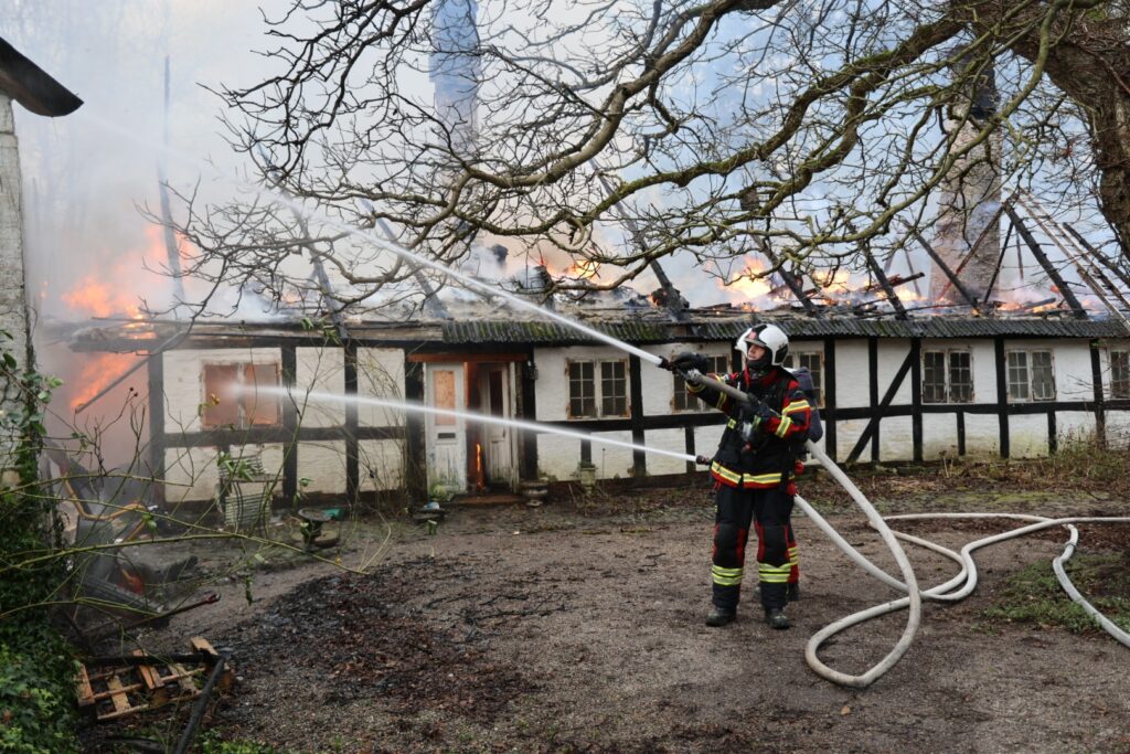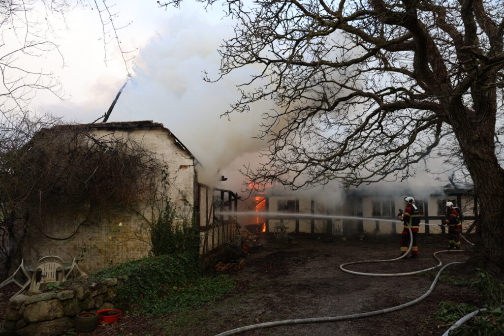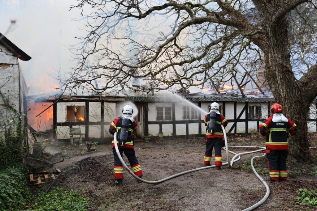 Ved udrykningskøretøjernes ankomst blev slukningsarbejdet hurtigt igangsat, men forventningen er, at huset brænder helt ned, da det er vanskeligt at få kontrol over flammerne.