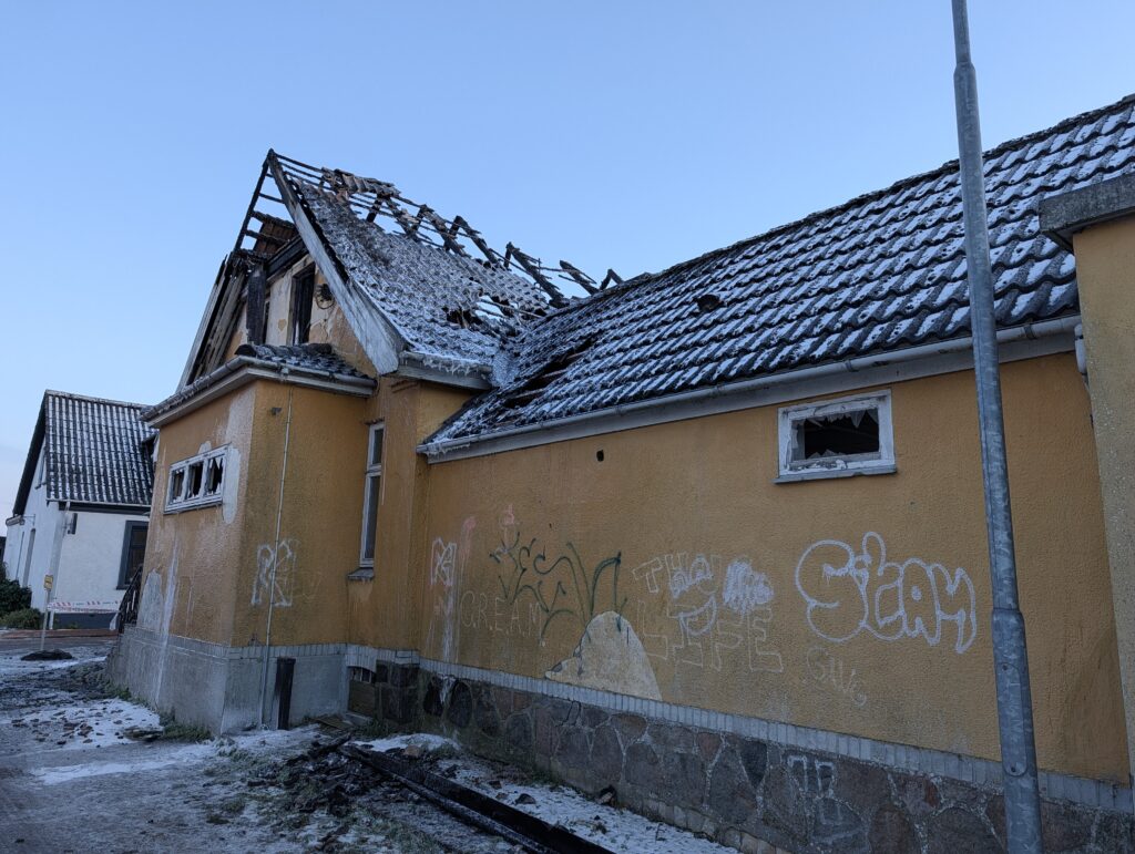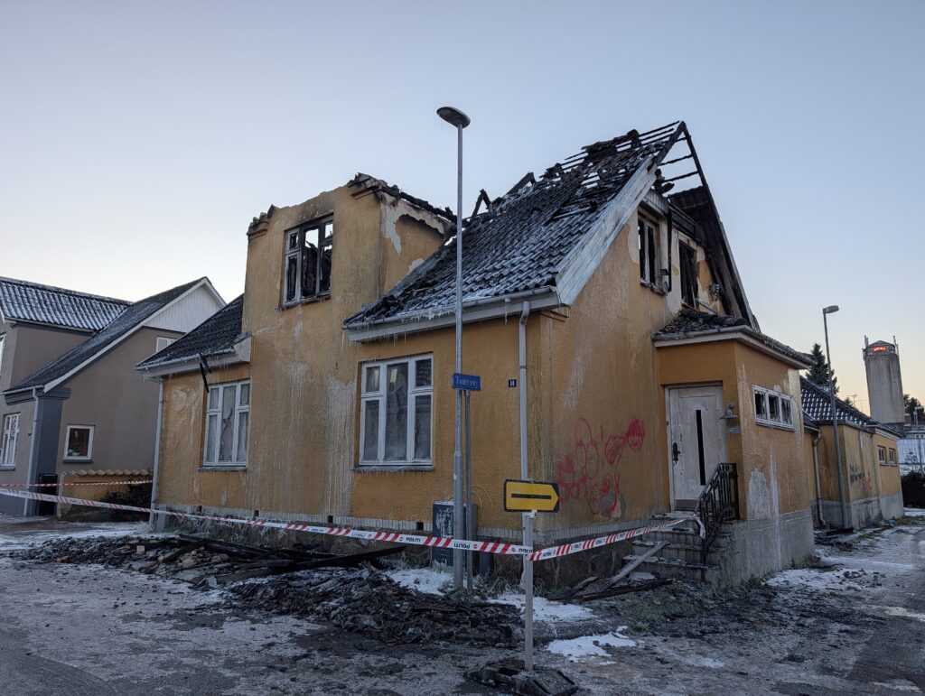 Politi og brandvæsen rykkede i løbet af natten til søndag ud til en villa, der stod i flammer. Her stod slukningsarbejdet på, og søndag eftermiddag har Presse-fotos.dk været forbi villaen, der står sørgeligt tilbage.