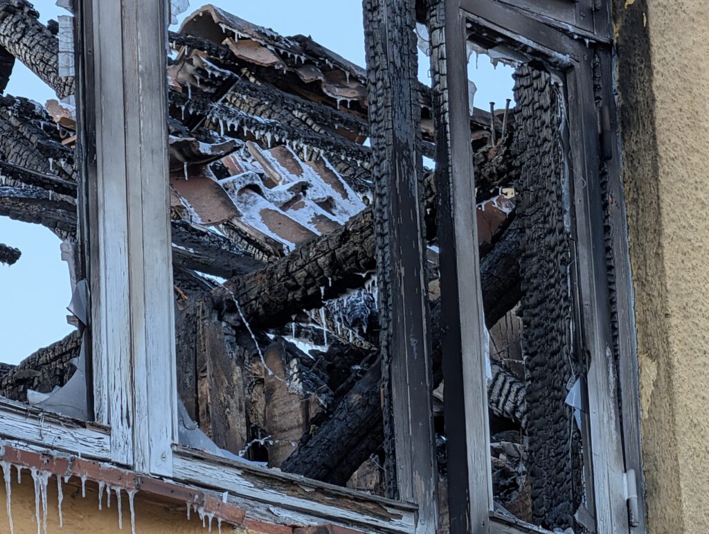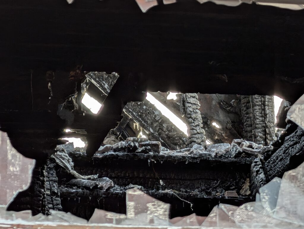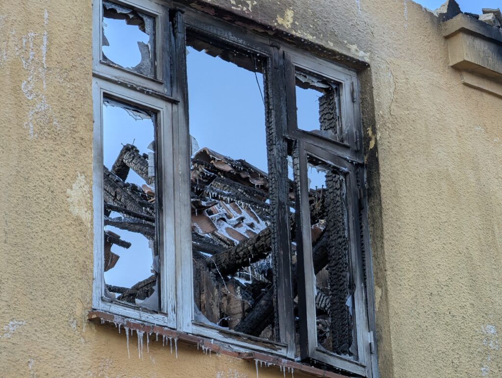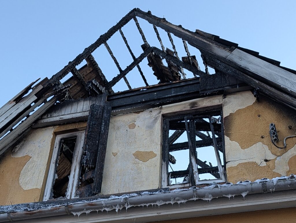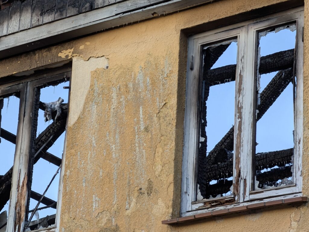 Her beskrives stedet som sørgeligt, hvor huset er helt udbrændt.