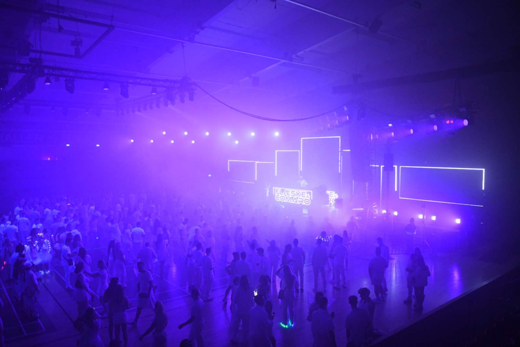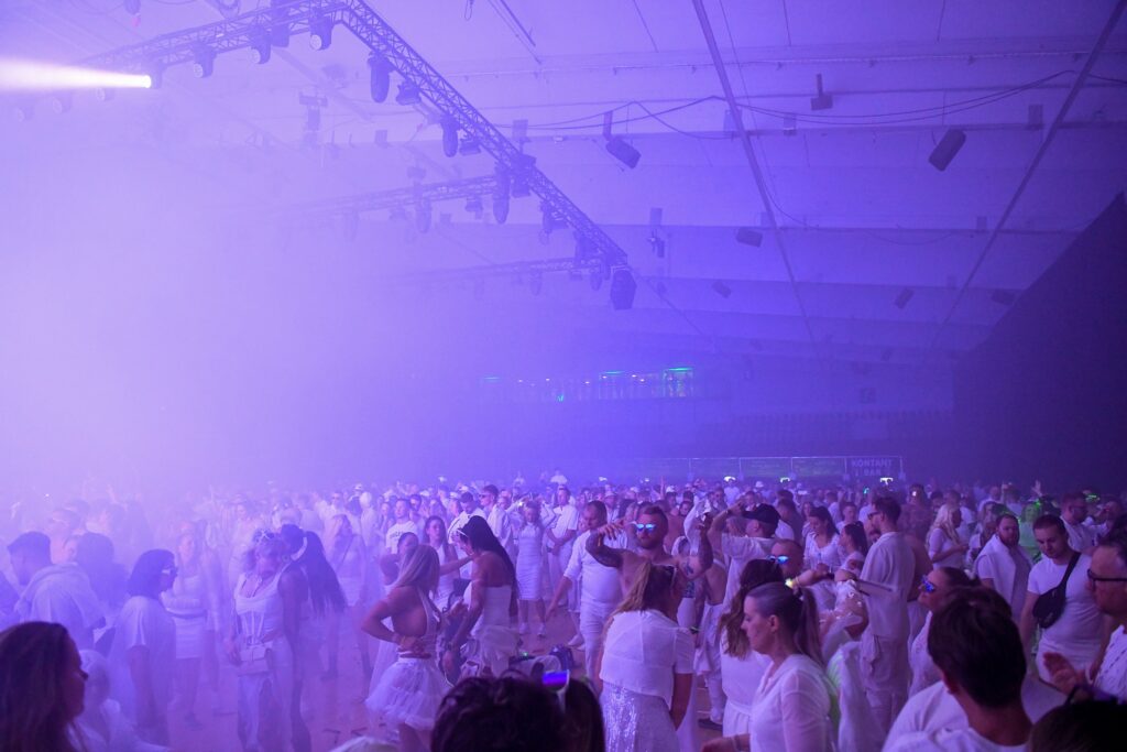 Hallen var fyldt med tusindvis af mennesker, der alle var klædt i hvidt og havde varmet bas-armen godt op på forhånd.