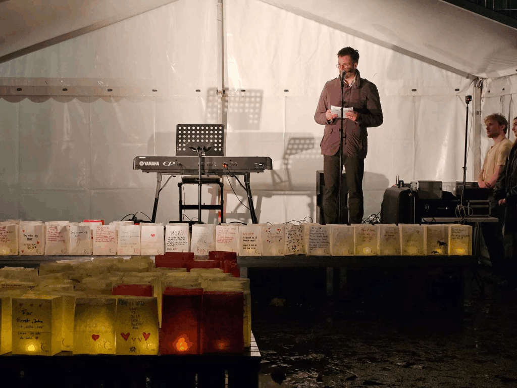 Efter talen blev der holdt et minuts stilhed for dem, der desværre tabte kampen mod kræften. Og til sidst trådte Julian-Felix Levin igen op på scenen for at afslutte lysceremonien.