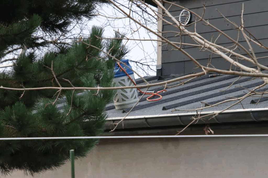 Billeder fra Højgårdsvej i Farum, hvor meldingen er indløbet fra, viser desuden en gasflaske med tilhørende brænder stå på et skråtag af tagpap.